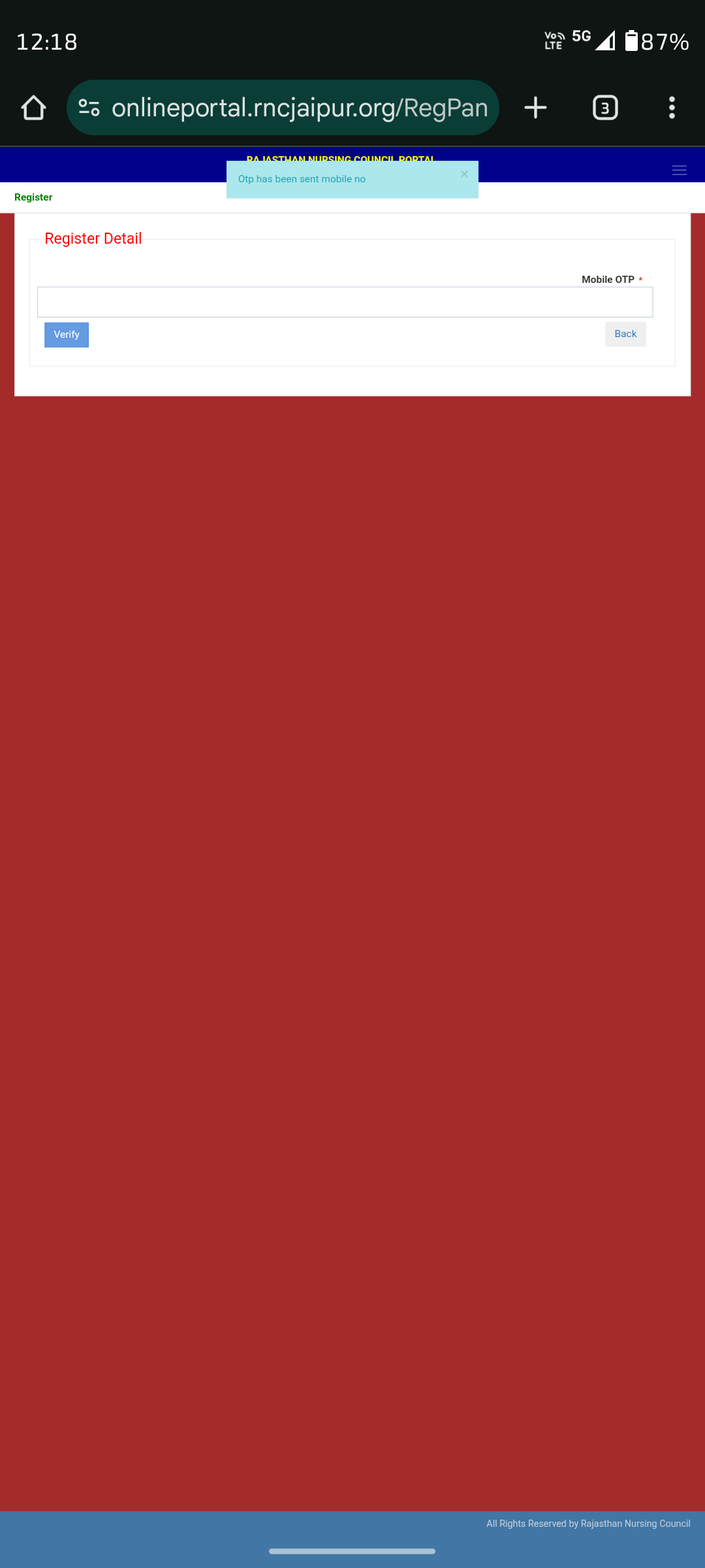 I have made a lot of attempts but I AM UNABLE TO recieve an OTP on my mobile for registration on the portal. AND I can't proceed any further to renew my RNC Registration. please tell me how to do that. |